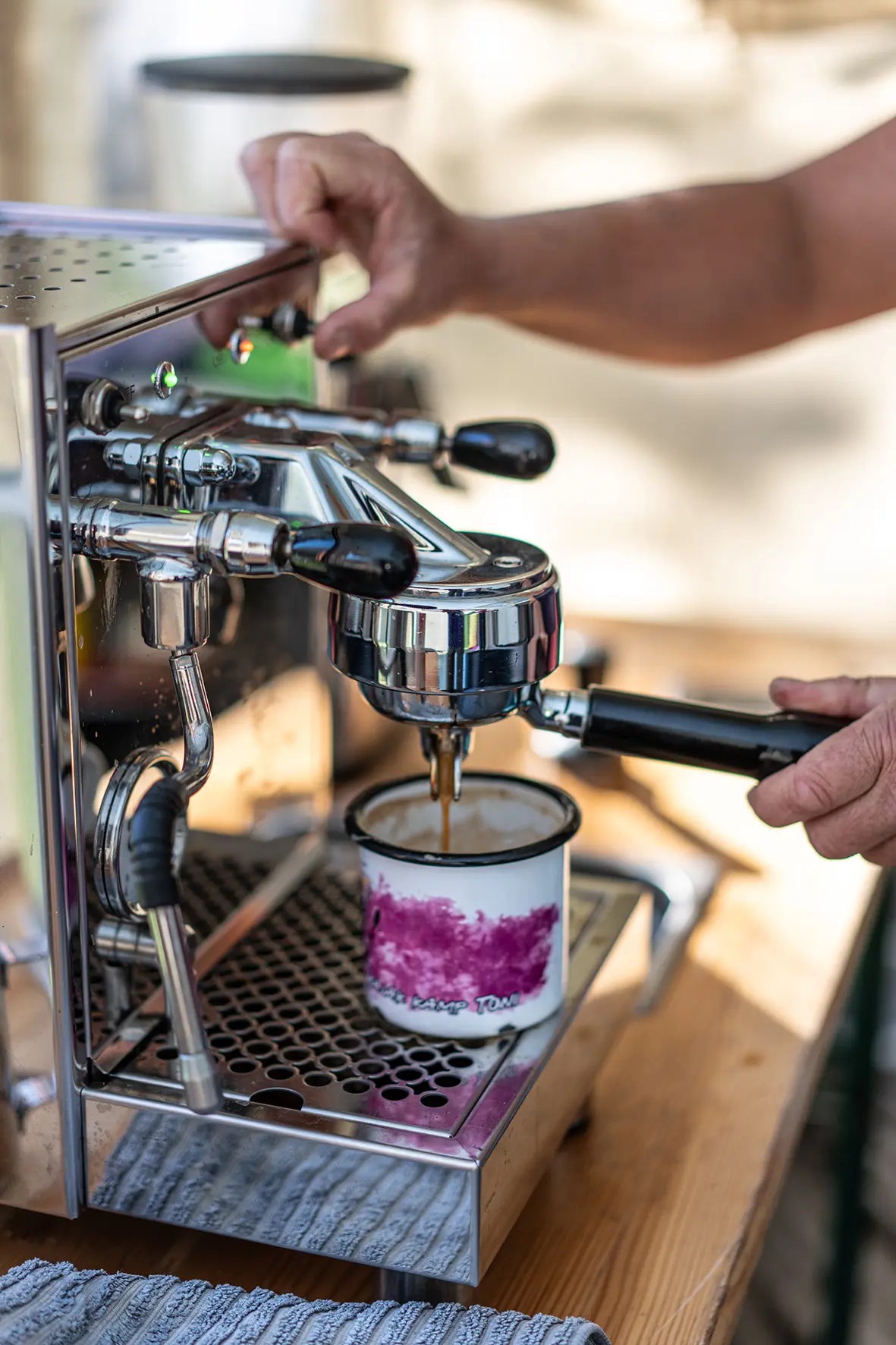 Bilder oben: Wir starten am Sonntag mit einem leckeren Cappu oder Espresso aus der Kanuschul-Maschine, dann geht es zum Seekajak-Programm nach Krefeld. Hier warten Testboote und Paddel sowie Workshops rund um das Seekajakfahren auf dich!