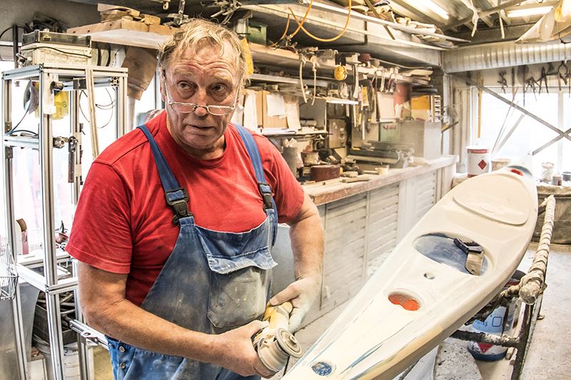 Denn Klaus Lettmann kann unsere Wünsche perfekt in einem ersten Prototypen umsetzen. Dabei helfen die Erfahrungen aus 50 Jahren Bootsbau. Keiner weiß besser, welcher Spant am besten geeignet ist für das neue Modell, wo noch Volumen hin muss und wo zu viel schadet. Sind wir dann das erste Mal mit dem neuen Kajak auf dem Wasser, sind wir immer wieder erstaunt. Der Prototyp des neuen Modells fährt oft schon so, wie wir uns das vorgestellt haben! Doch ein bisschen was zu mäkeln und kritisieren gibt es meist doch noch – und wenn es nur optische Details sind die noch diskutiert werden müssen.