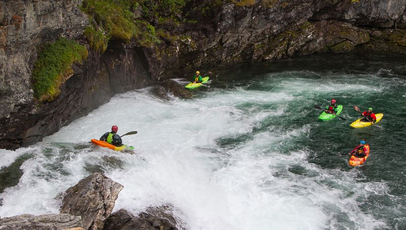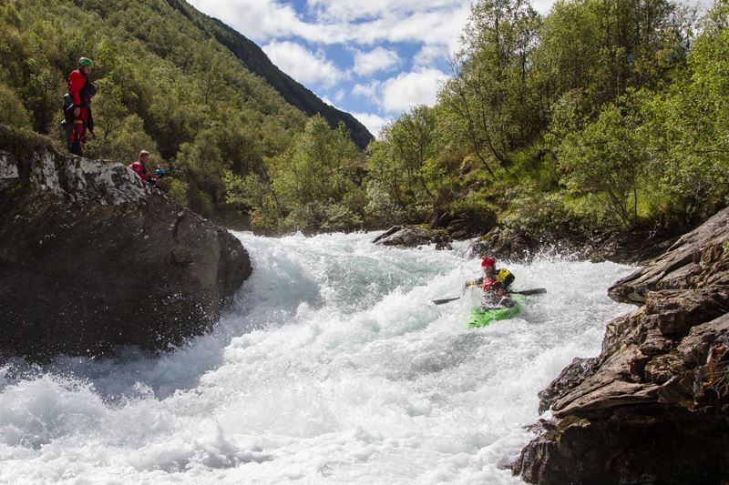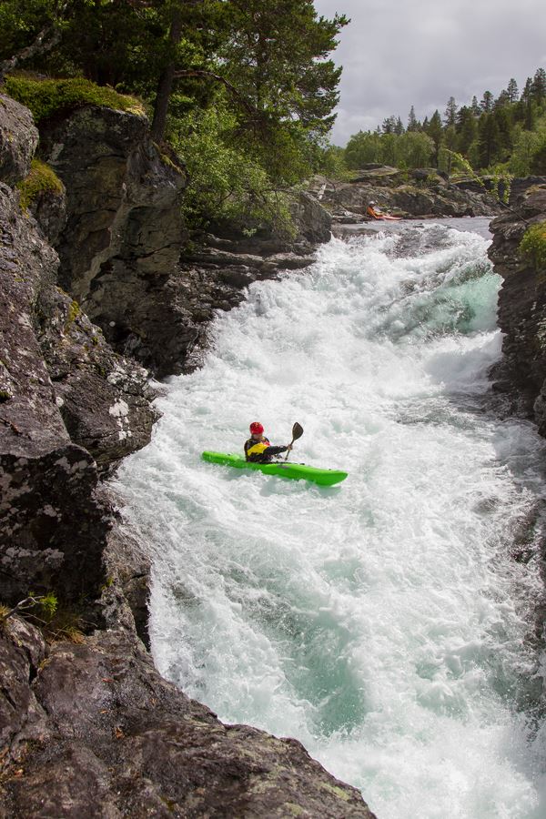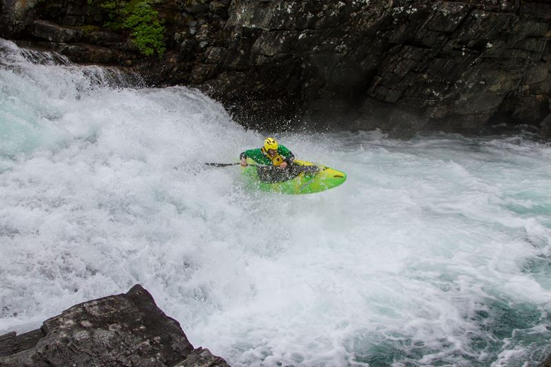 Wir starten am Playrun der Sjoa. Hier können wir uns eingrooven und den neuen Plan B auf seine Wuchtwassertauglichkeit testen. Fette Wellen und ordentliche Walzen bieten sich für den Testlauf an. Bei 150 Kubik auf der Sjoa kein Problem. Wir lassen uns ordentlich durchmischen. Doch wenn die Rolle sitzt, kein Problem! Einige Tage surfen wir auf den Wellen die die Welt bedeuten und bepaddeln noch weitere Abschnitte der Sjoa und machen noch einen Abstecher in die nahe Hedmark, zu Setninga und Co.