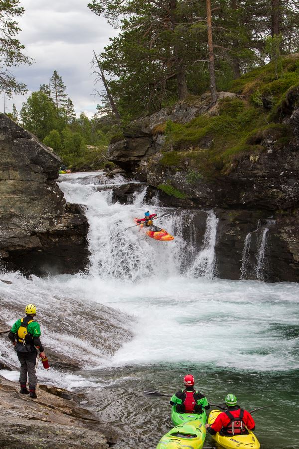 Auf dem Weg gen Norden biegen wir ins Ottadalen ab. Die Bövra verwöhnt uns mit perfektem Pegel. Obere Bövra, check! Untere Bövra, auch check! Unterschiedlicher kann ein Fluss kaum sein. Oben Drop and Pool mit einigen spannenden und vielen traumhaften Stellen. Im Unterlauf ein wahres Wuchtwasser-Schmankerl!