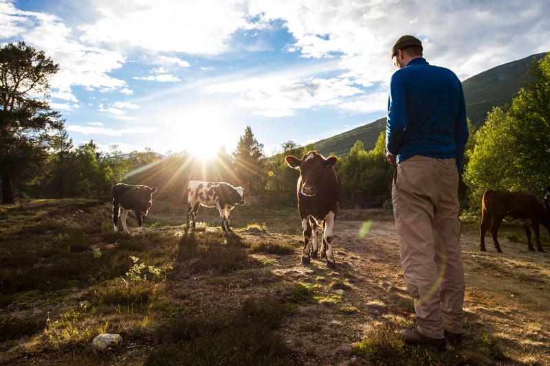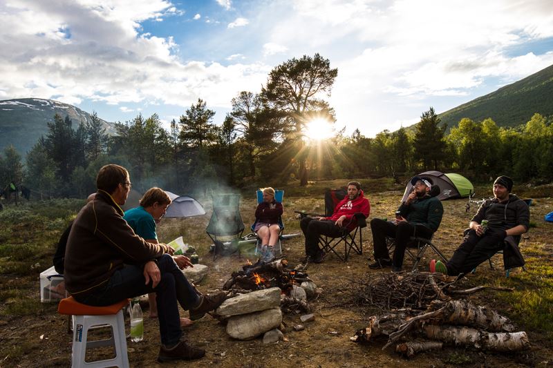 Bilder u. und o.: Camp mit Kuh und Camp mit Lagerfeuer im traumhaften Ulväa-Tal