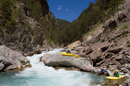 Der Guil ist einer der schönsten Flüsse Frankreichs. Mindestens vier Etappen laden Paddler aus ganz Europa zum Tanz in den Fluten ein. Die schwerste, aber für viele auch schönste Etappe, ist die Schutzengelschlucht unterhalb der Ortschaft Chateau Queras.