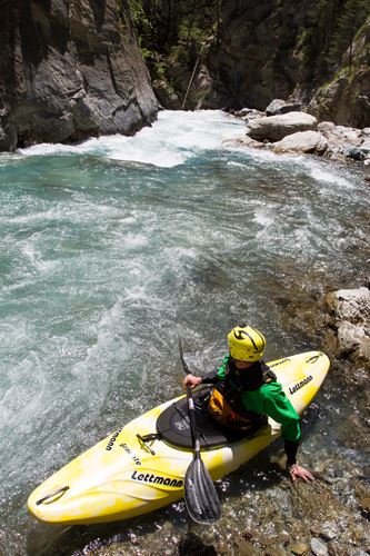 Kaum hat man sich vom kurzen Burggraben-Adrenalin-Kick erholt, schon wird es wieder spannend. Wunderschönes, abwechslungsreiches Wildwasser im vierten Grad, teils offen, teils in enger Schlucht, erwartet die Recken tief drinnen in der Schutzengelschlucht.