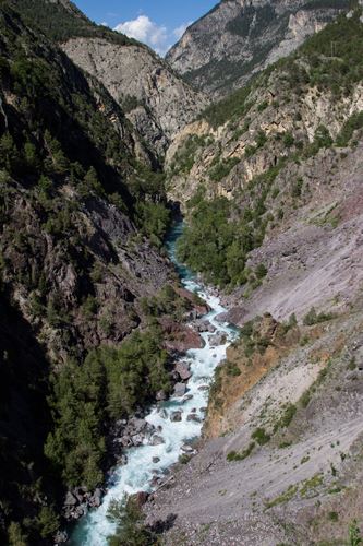 Wenn man seine Ruhe will, kann man auf dem städtischen Campingplatz hinter der Ortschaft Aiguilles unterkommen. Schattig, viele Bäume und völlige Ruhe zeichnen den Platz im Frühjahr aus. Hingegen ist die untere Guilschlucht (Bild rechts) bei Ablass des Staudamms weniger ruhig und entspannt. Bei dem Flow für uns eher unfahrbar.