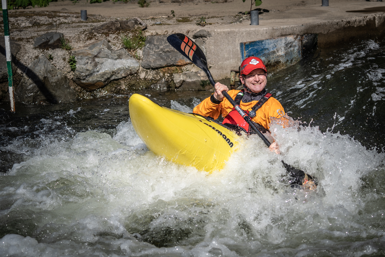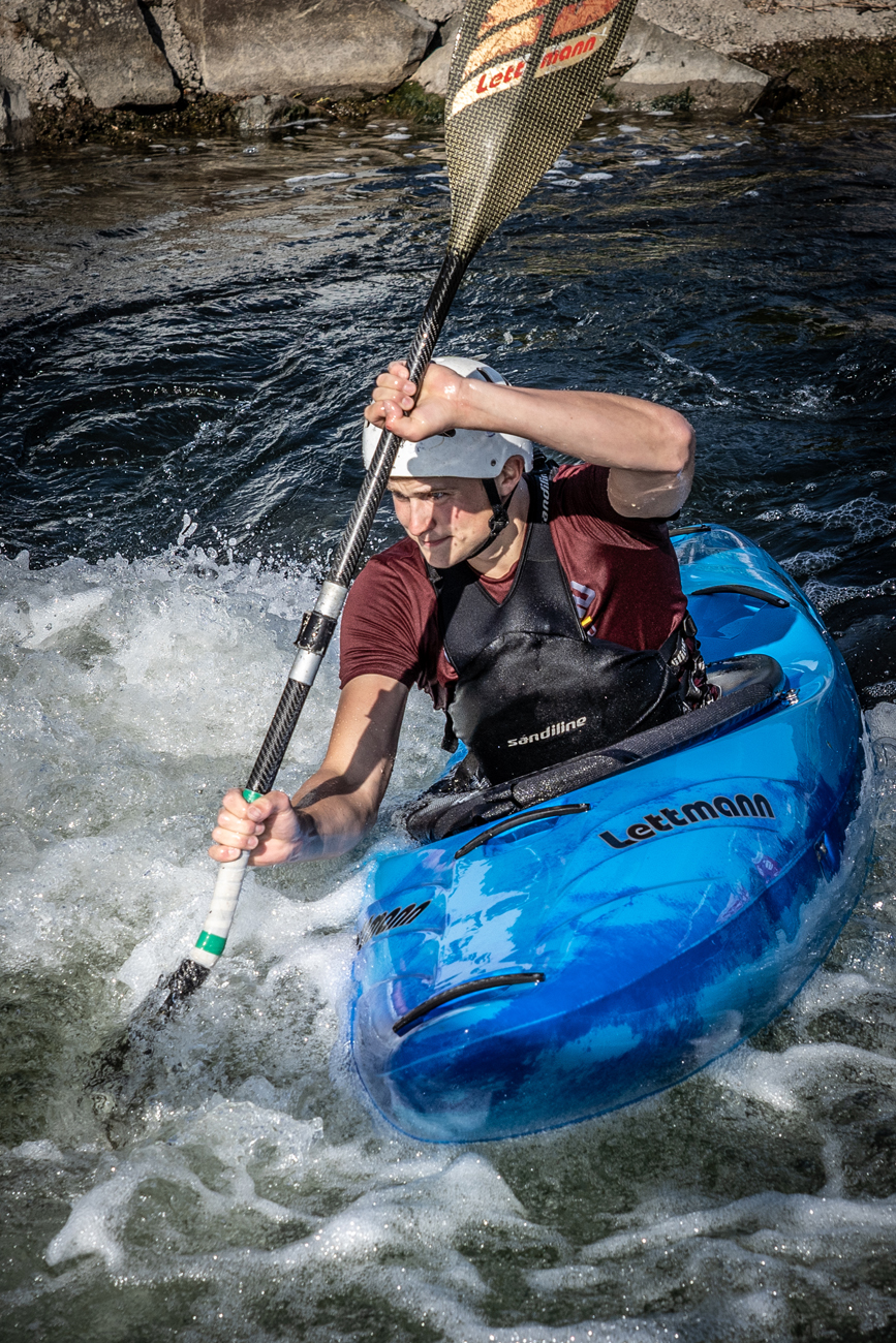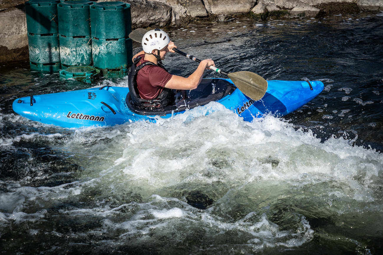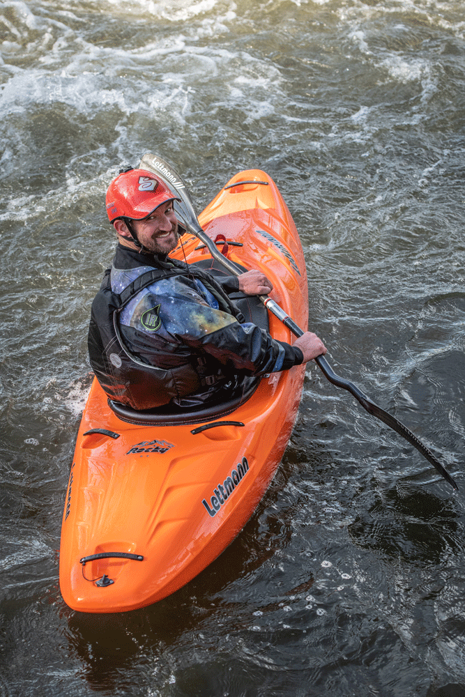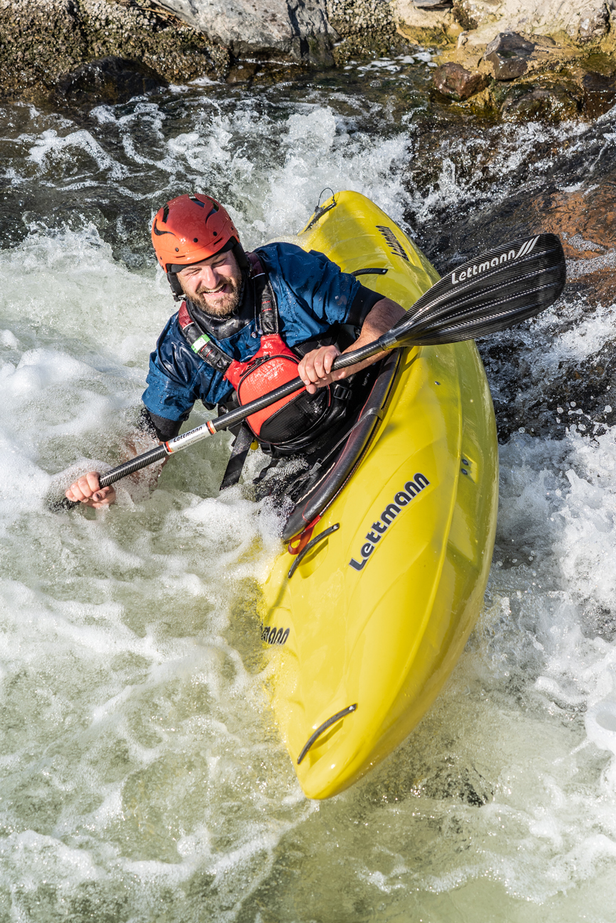 Der neue Rocky soll also kein Spezialist sein, sondern, genau wie sein ergrauter Vorfahre, ein sportlicher Allrounder. Er erleichtert dem Einsteiger die ersten Schritte, dem Profi bietet er unbegrenzte Möglichkeiten, seine Komfortzone auszuweiten. „Keiner soll je behaupten können, dass diese oder jene Stelle mit dem Boot nicht geht. Wir wollen nie hören, dass das Kajak der begrenzende Faktor ist, nicht spurtreu genug im Kabbel- oder Presswasser ist oder nach Stufen und Walzen zu nass läuft“ so Christian. Das massive Volumen im Heck und im stark aufgebogenen Bug des Rocky unterstreichen diese Worte. Das Kajak erweckt auf den ersten Blick Vertrauen.