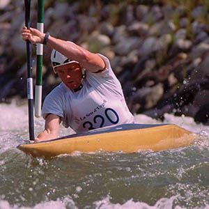 2000 wird Jochen Lettmann deutscher Vize-Meister im Kajakfreestyle in Augsburg.