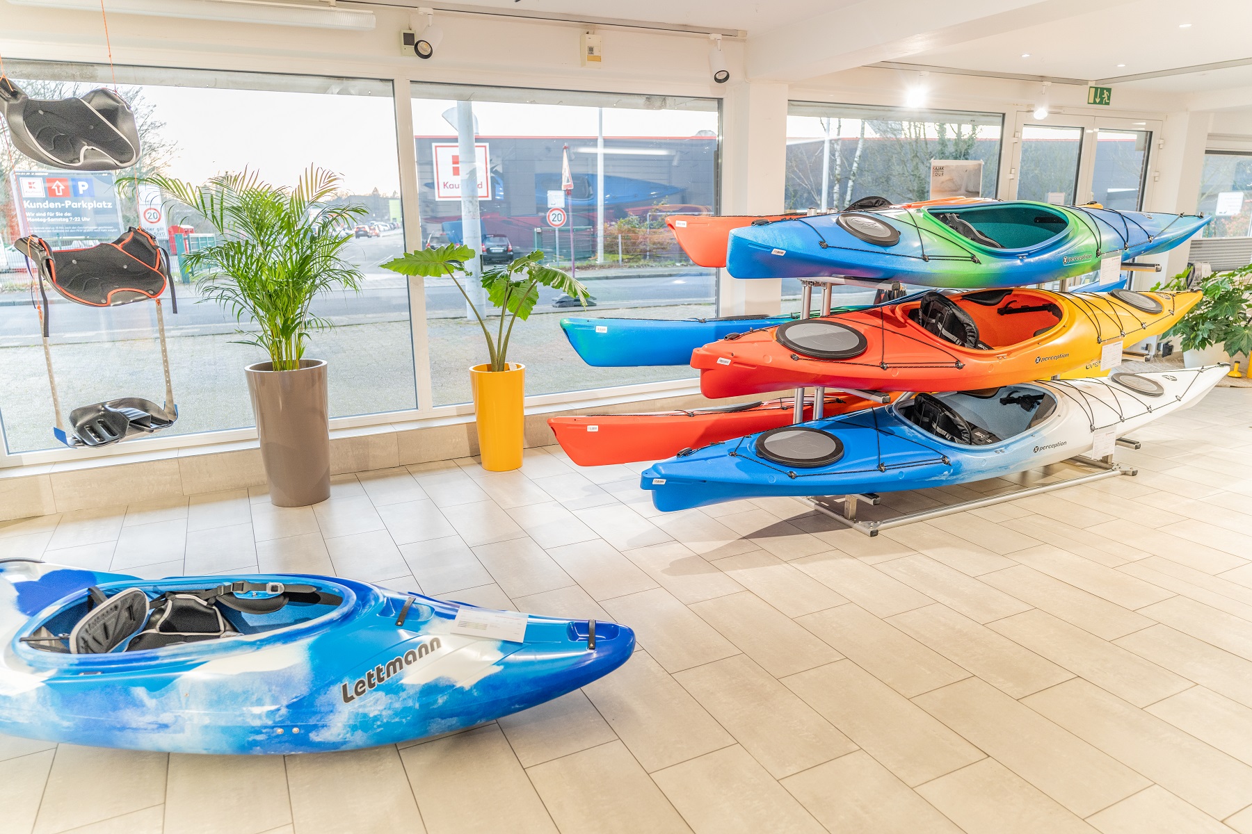 Bei uns in Moers findest du nicht nur unsere Produktion, sondern auch unsere große Ausstellung mit Booten und Paddeln. Schau doch mal rein!
