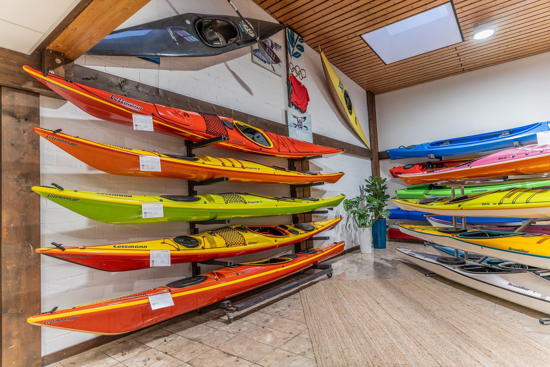 In unserem Lager warten mehr als 600 Boote in verschiedenen Formen und Farben auf einen neuen Besitzer. Wenn du dir noch nicht sicher bist, welches das Boot deiner Träume ist, kannst du in unserer Ausstellung schonmal ausgiebig "probesitzen" und dich von uns beraten lassen. Hast du eine Vorauswahl getroffen, bieten wir dir an, deinen Favoriten auf dem Wasser zu testen. Dafür stehen dir alle unsere aktuellen Bootsmodelle und Paddel als Testmaterial zur Verfügung.